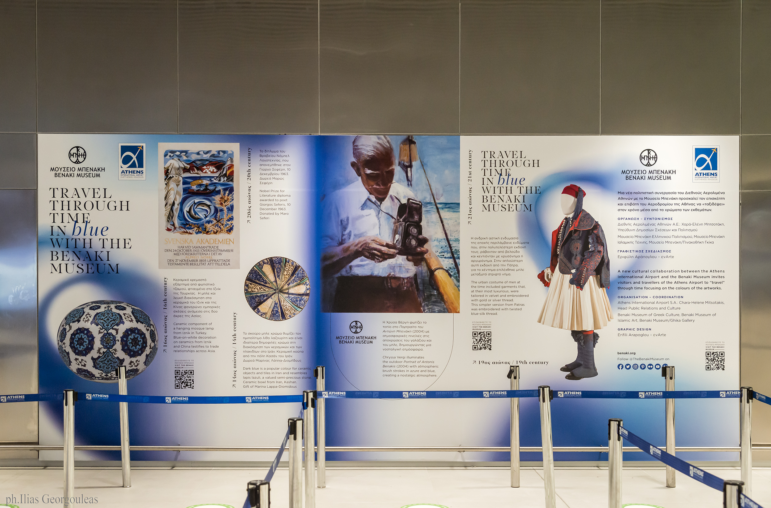 Ύστερα από πέντε χρόνια συνεχούς συνεργασίας και βραβευμένων εκθέσεων, το Μουσείο Μπενάκη και ο Διεθνής Αερολιμένας Αθηνών συνεχίζουν να επενδύουν στον πολιτισμό μέσα στους χώρους του Διεθνούς Αερολιμένα Αθηνών, όπου καθημερινά διαβαίνουν χιλιάδες ταξιδιωτών από όλο τον κόσμο. Πρόκειται για ένα πρωτοπόρο εκθεσιακό εγχείρημα που προσκαλεί τον επισκέπτη να “ταξιδέψει” στον χρόνο μέσα από τα χρώματα. Άξονα ανάπτυξης του αφηγήματος αποτελούν χρώματα από αντικείμενα που περιλαμβάνονται στις συλλογές του Μουσείου Μπενάκη.