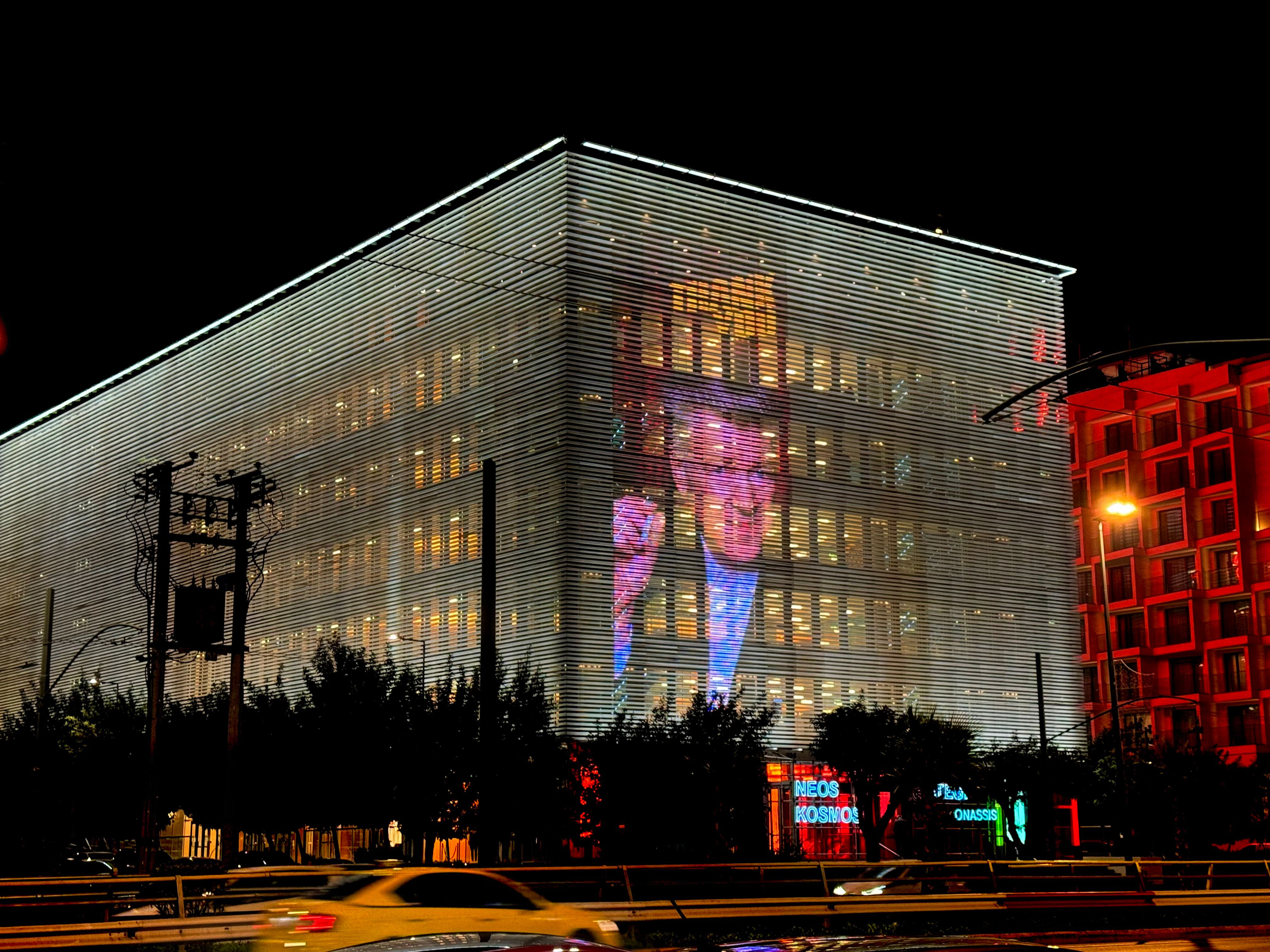 To πρόσωπο του David Lynch φωτίζει τη Στέγη του Ιδρύματος Ωνάση