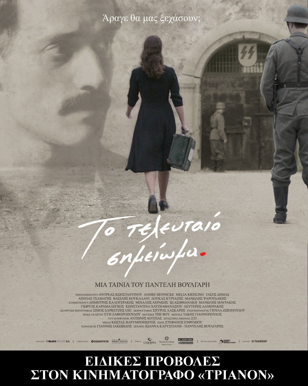 Σειρά ειδικών προβολών της ταινίας «Το Τελευταίο Σημείωμα» διοργανώνουν ο Παντελής Βούλγαρης, η Black Orange και η Tanweer, τιμώντας τη μνήμη των 200 αγωνιστών που εκτελέστηκαν την 1η Μαΐου 1944 στην Καισαριανή.