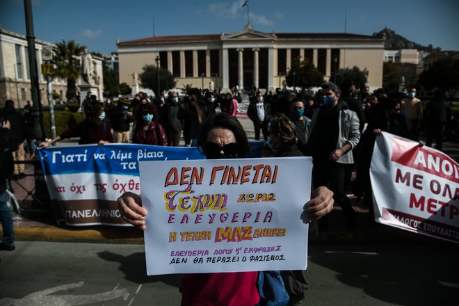 Οι καλλιτέχνες βρίσκονται εδώ και σχεδόν ένα χρόνο σε πολύ δεινή θέση, δεδομένης της παύσης των πολιτιστικών εκδηλώσεων, αλλά και της μη στήριξής τους από την Πολιτεία όλο αυτό το διάστημα. Στις δυσκολίες αυτές ήρθε να προστεθεί ένα ακόμη πρόβλημα, το οποίο, ωστόσο, δεν αφορά μόνο την καλλιτεχνική κοινότητα, αλλά ολόκληρο το φάσμα της κοινωνίας, κάθε πτυχή της και κάθε ελεύθερα σκεπτόμενο άνθρωπο.