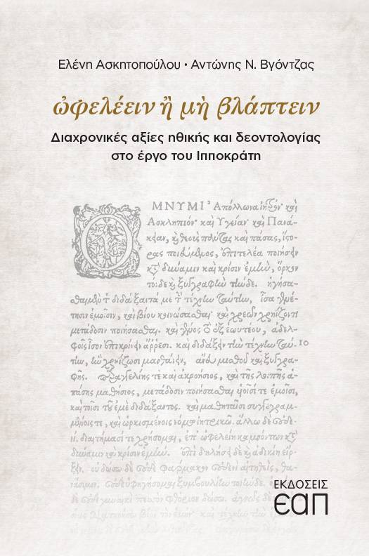 Ωφελέειν, ή μη βλάπτειν, ένα βιβλίο από τις εκδόσεις ΕΑΠ, που πραγματεύεται τις βασικές ηθικές και δεοντολογικές έννοιες της "Ιπποκρατικής Συλλογής" και του "Όρκου".