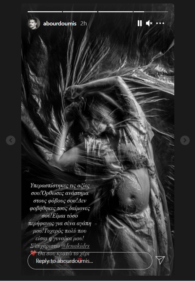 “Υπερασπίστηκες τις αξίες σου! Όρθωσες ανάστημα στους φόβους σου! Δεν φοβήθηκες τους δαίμονές σου! Είμαι τόσο περήφανος για σένα αγάπη μου! Τυχερός πολύ που είσαι η γυναίκα μου! Σε ευχαριστώ Λένα Δροσάκη. Θα σου κρατώ το χέρι σου αηδόνα μου”.