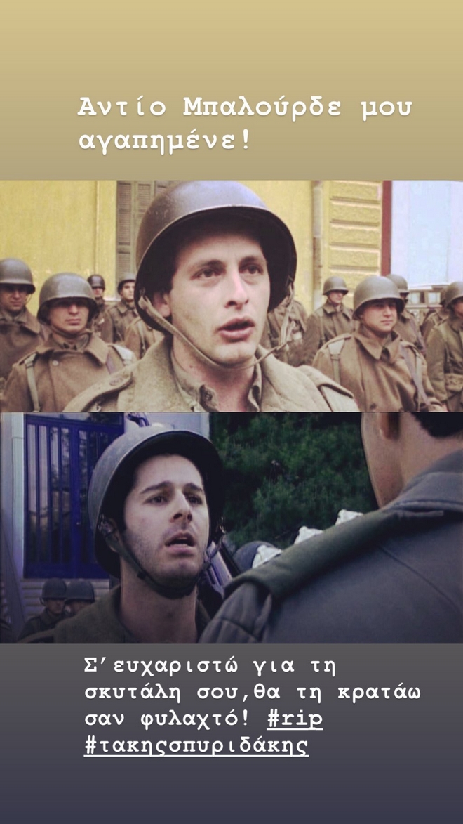 «Αντίο Μπαλούρδε μου αγαπημένε! Σ’ ευχαριστώ για τη σκυτάλη σου, την κρατάω σαν φυλαχτό» έγραψε ο ηθοποιός στην ανάρτησή του:
