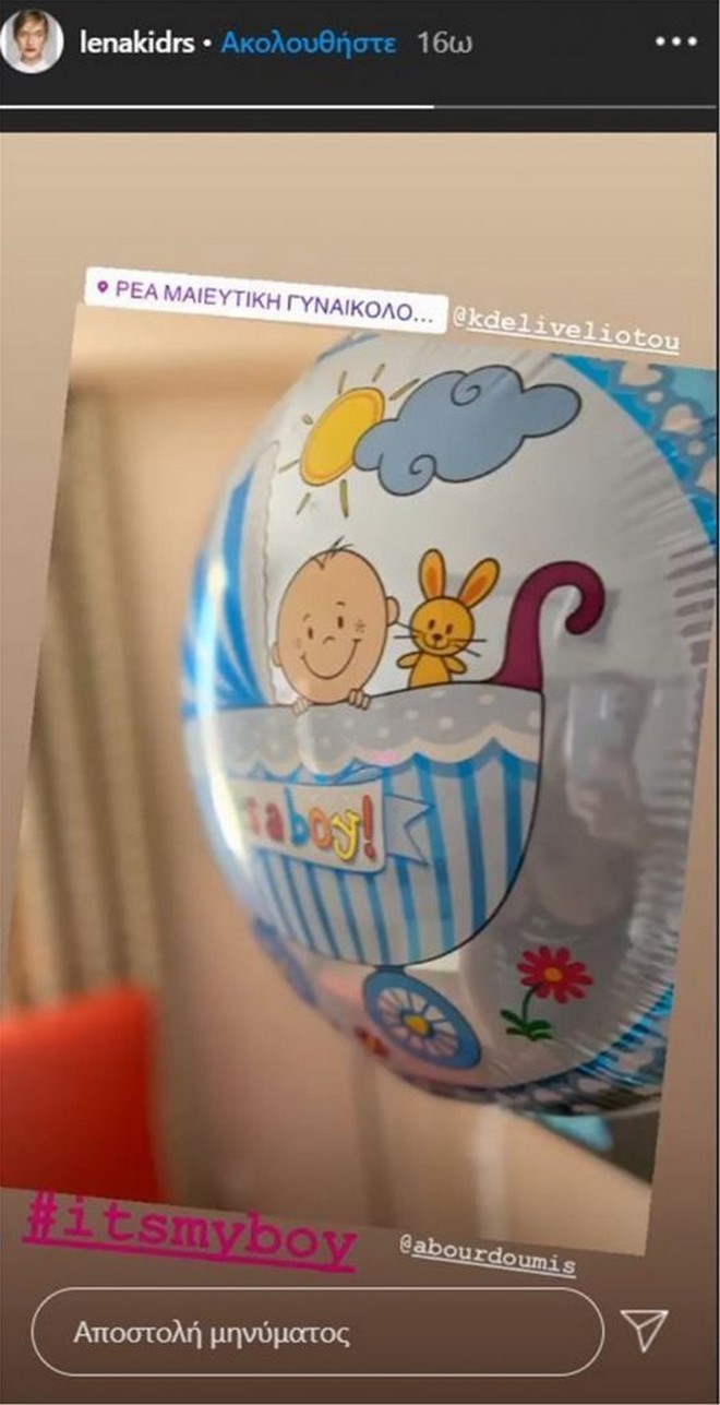 Την πρώτη της ανάρτηση μετά τη γέννηση του γιου της έκανε και η Λένα Δροσάκη. Η ηθοποιός ανέβασε ως InstaStory μια φωτογραφία μέσα από το δωμάτιο του μαιευτηρίου στην οποία βλέπουμε ένα μπαλόνι που γράφει: «It’s a boy».