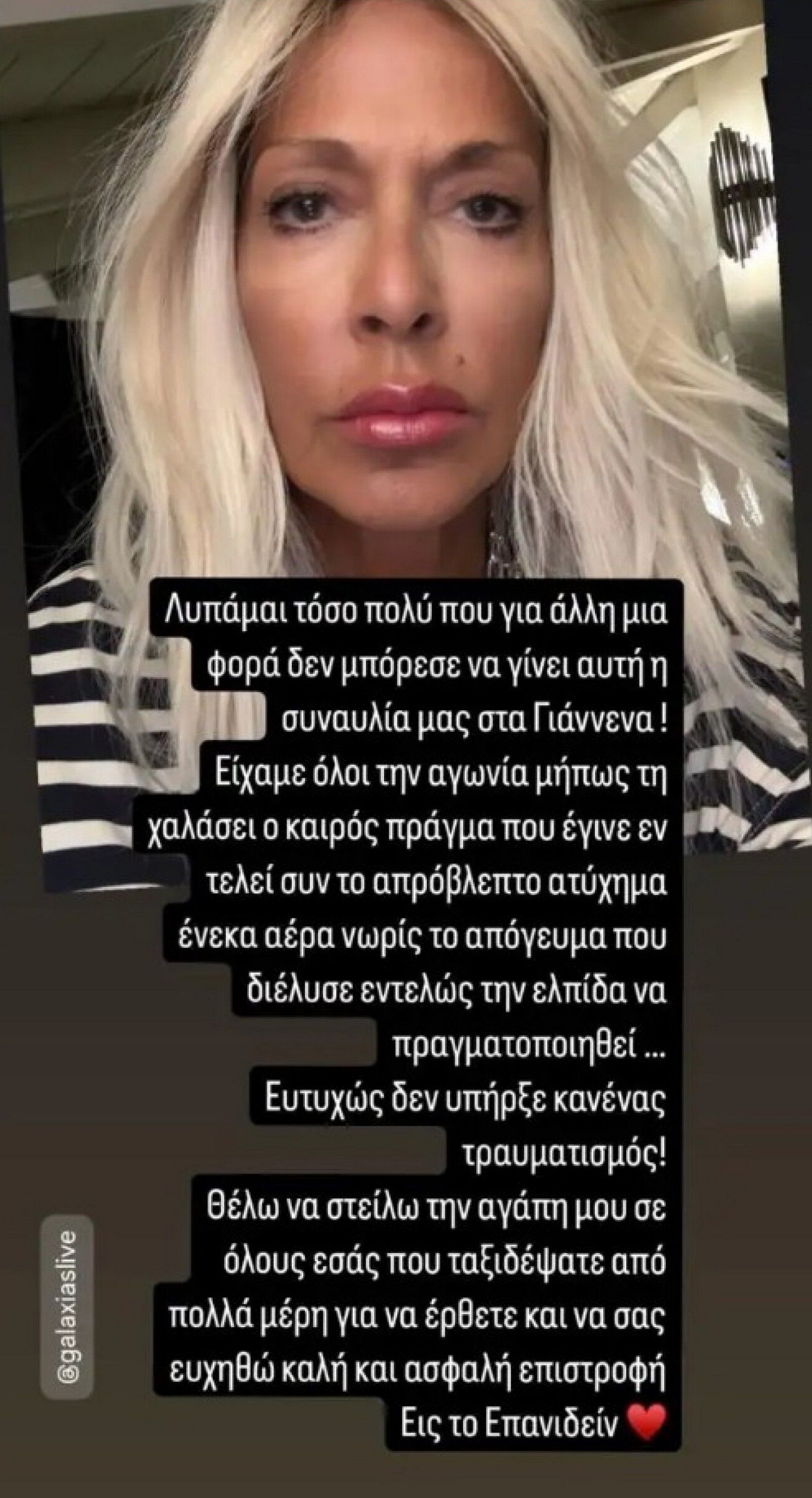 «Λυπάμαι τόσο πολύ που για άλλη μια φορά δεν μπόρεσε να γίνει αυτή η συναυλία μας στα Γιάννενα.