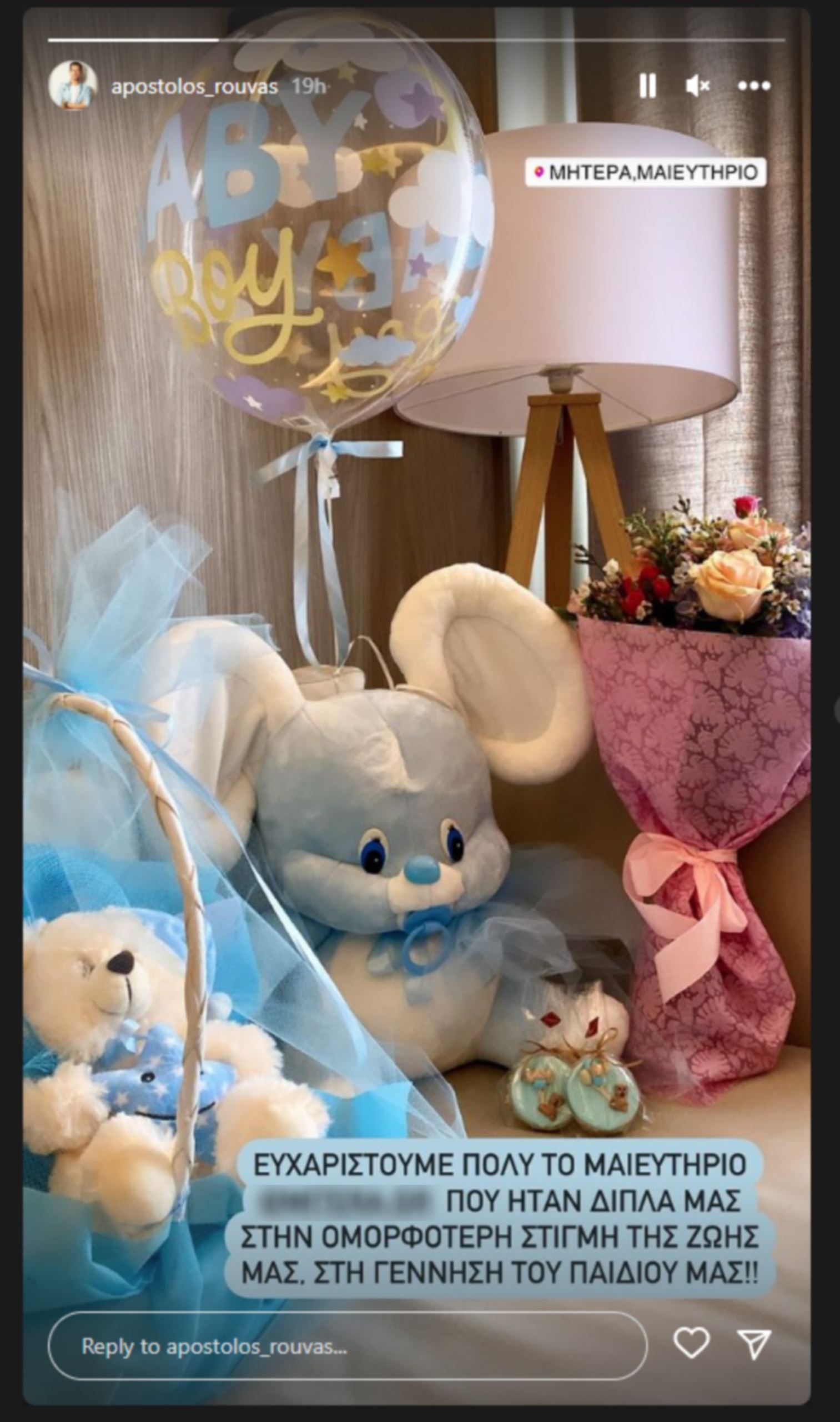 Συγκεκριμένα, δημοσίευσε μια φωτογραφία με τα δώρα που δέχτηκαν με τη σύντροφό του για τη γέννηση του γιου τους, ενώ ευχαρίστησε το νοσοκομείο.