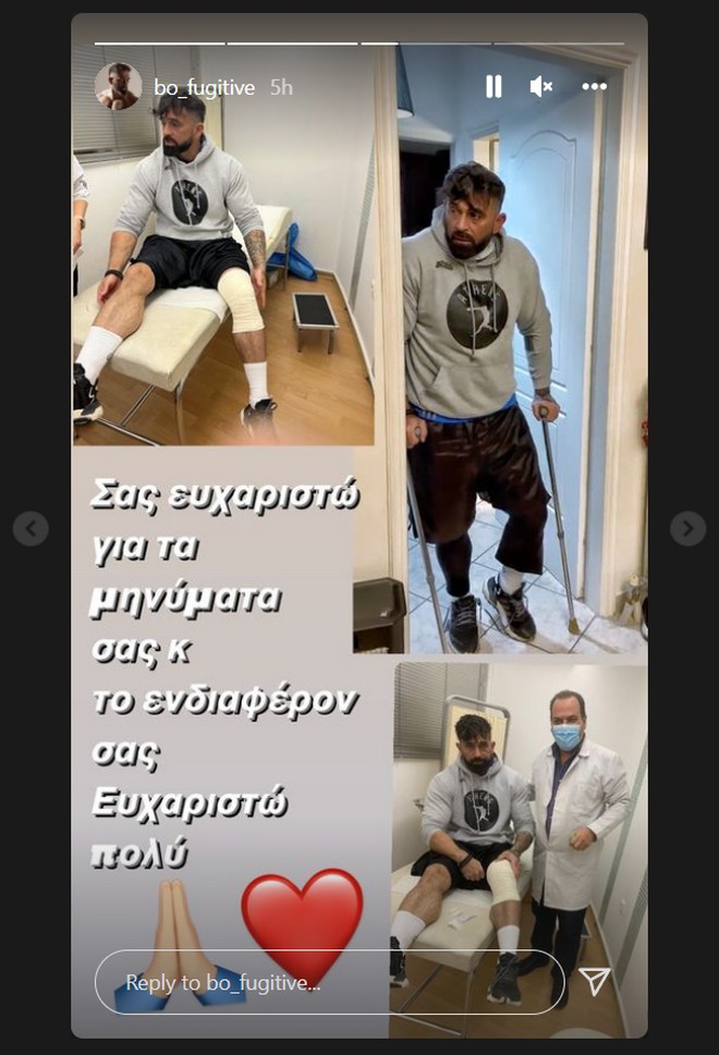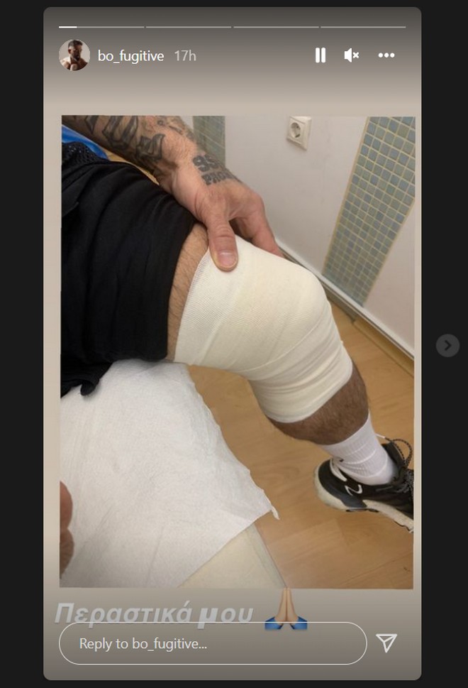 Συγκεκριμένα, δημοσίευσε δύο καρέ στα οποία φαίνεται να του έχουν δέσει το πόδι, ενώ στηρίζεται σε πατερίτσες για να περπατήσει.