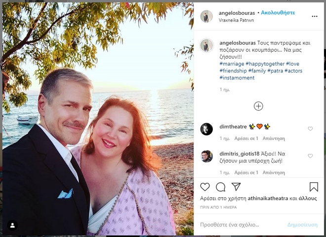 Οι δύο ηθοποιοί κράτησαν τον γάμο τους μακριά από τα φώτα της δημοσιότητας, ωστόσο, το ευχάριστο γεγονός “προδόθηκε” από κάποιες φωτογραφίες των κουμπάρων τους, Βένιας Καραγιάννη και Άγγελου Μπούρα.