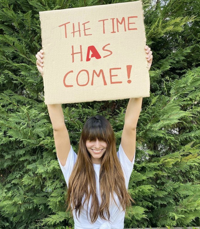 Στην εν λόγω φωτογραφία, με την οποία καλωσόρίζει ο Alpha την Ηλιάνα Παπαγεωργίου, το γνωστό μοντέλο κρατά ένα πλακάτ στο οποίο αναγράφεται η φράση “The time has come”, αλλά το “a” έχει αντικατασταθεί με το “A” του λογοτύπου του σταθμού.