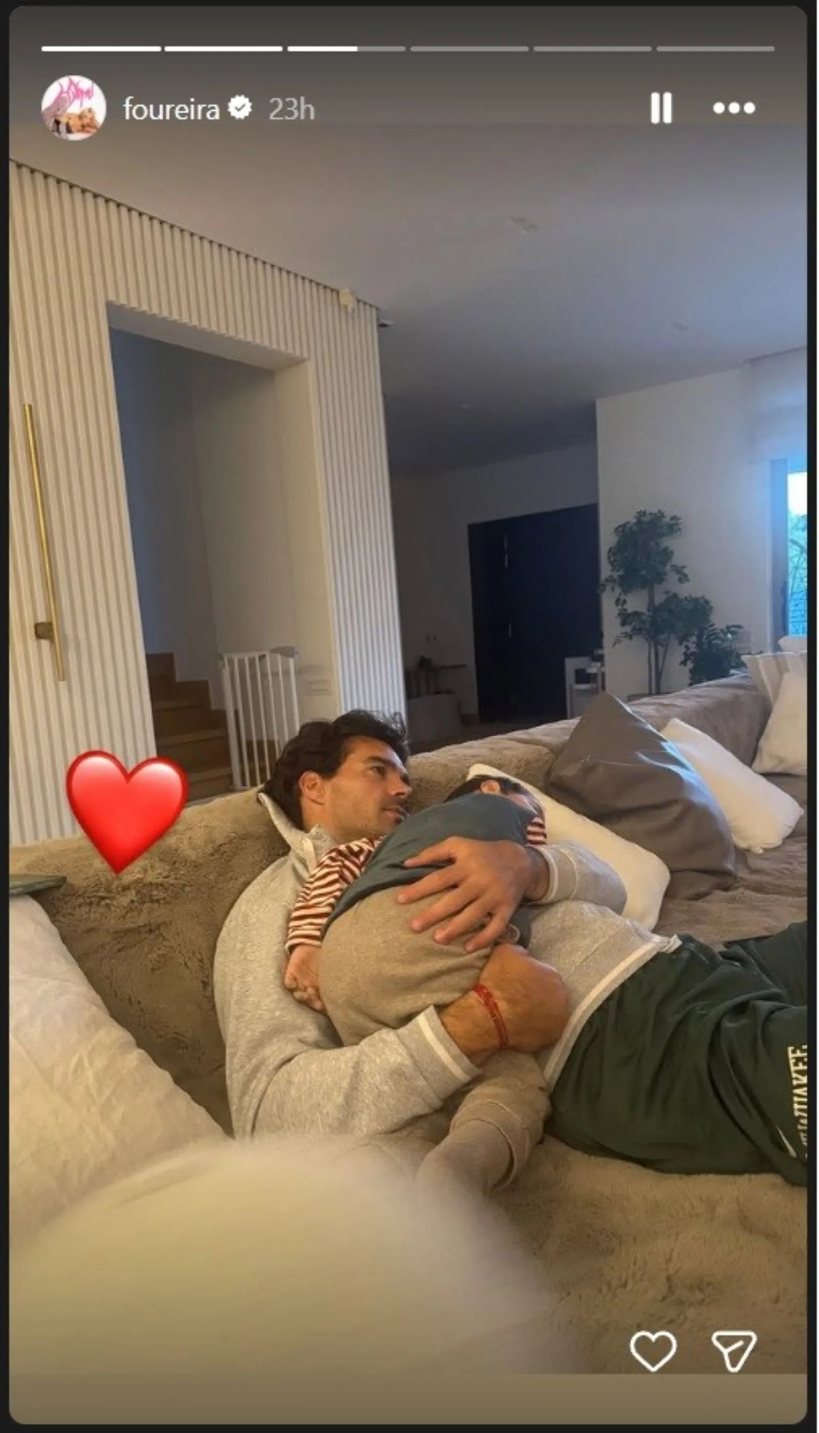 Η Ελένη Φουρέιρα φωτογραφίζει τον σύντροφό της, Αλμπέρτο Μποτία, να κρατά αγκαλιά τον γιο τους, Ερμή. Το γλυκό στιγμιότυπο.