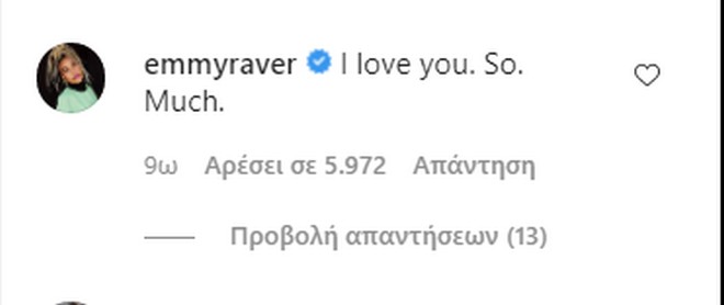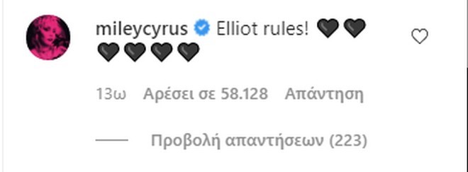 Τέλος, ανάμεσα στα υποστηρικτικά σχόλια, βρέθηκε και αυτό της Emmy Raver-Lampman, συμπρωταγωνίστριας του Έλιοτ στο “Umbrella Academy”. Σ’ αγαπώ τόσο πολύ”, έγραψε.