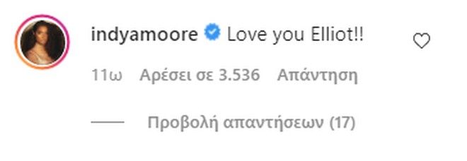 Η δημοφιλής ηθοποιός, μοντέλο και μέλος της τρανς κοινότητας Indya Moore έστειλε μήνυμα αγάπης στον Έλιοτ.