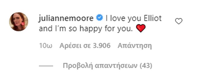 Τα υποστηρικτικά σχόλια ήταν αμέτρητα και στο Instagram, με το ποστ του Έλιοτ που κάνει coming out να λαμβάνει μέχρι αυτή την ώρα πάνω από 2,2 εκατ. likes και εκατοντάδες χιλιάδες σχόλια. Μεταξύ αυτών υπήρξαν και σχόλια γνωστών καλλιτεχνών, που θέλησαν να ενδυναμώσουν τον ηθοποιό.