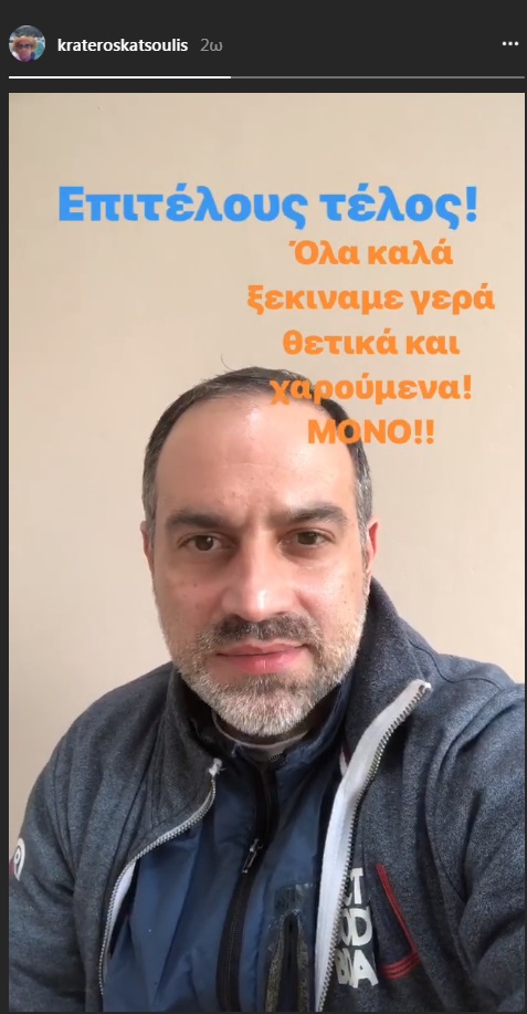 “Επιτέλους τέλος! Όλα καλά, ξεκινάμε γερά, θετικά και χαρούμενα! Μόνο!!” έγραψε στο story του instagram.