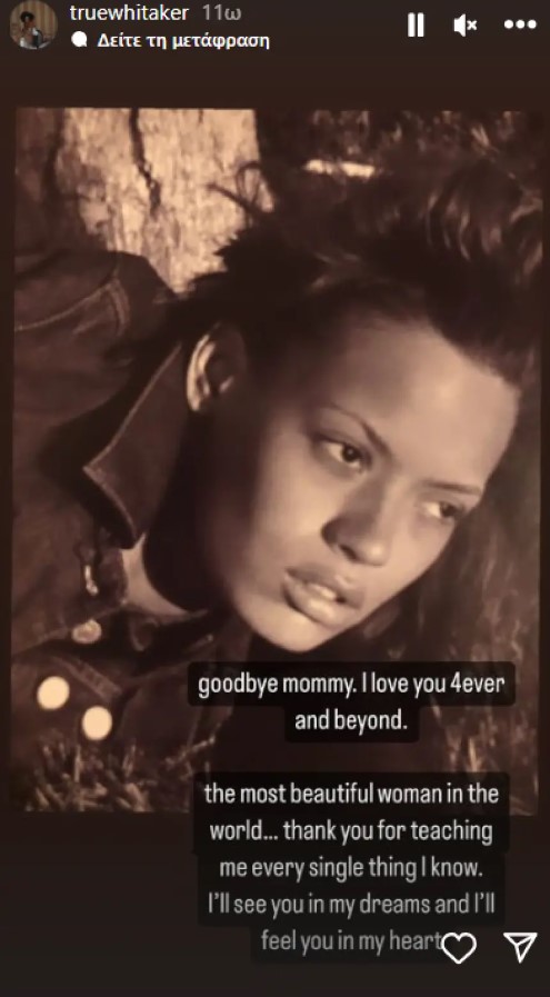 “Αντίο μαμά. Σε αγαπώ για πάντα. Η πιο όμορφη γυναίκα στον κόσμο … σε ευχαριστώ που μου έμαθες κάθε τι που ξέρω. Θα σε βλέπω στα όνειρά μου και θα σε νιώθω στην καρδιά μου”, έγραψε η True Whitaker.