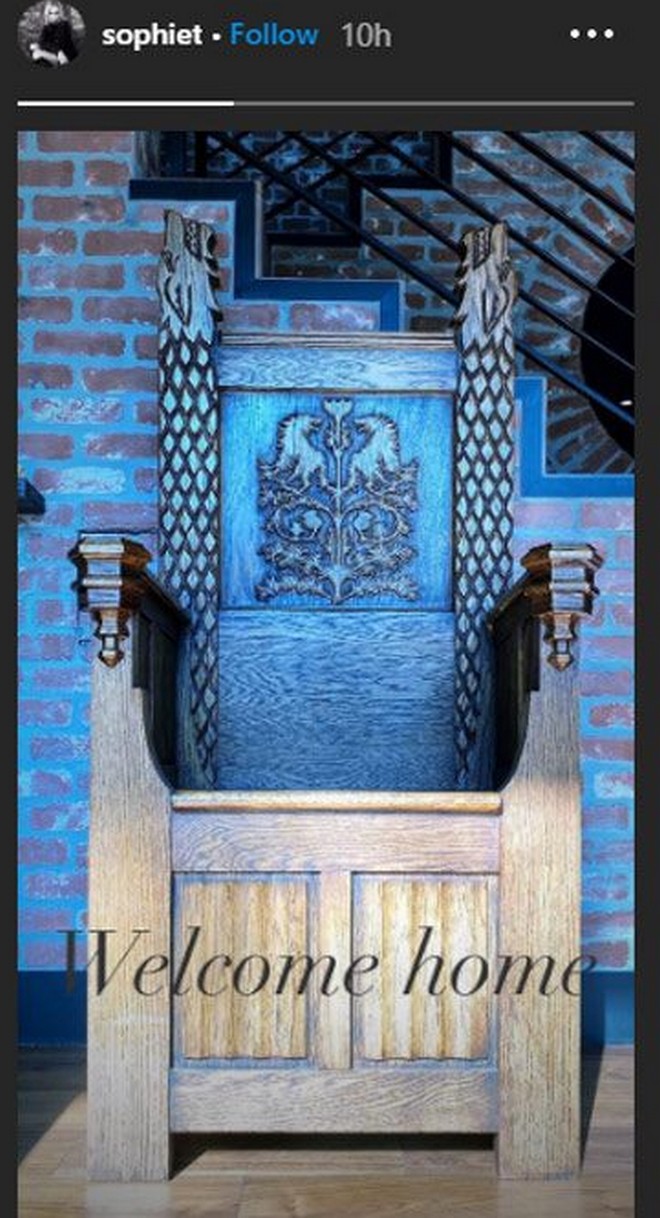 Με ανάρτησή της στο Instagram η Σόφι Τέρνερ ενημέρωσε τους θαυμαστές της, πως ο περίφημος θρόνος της "Βασίλισσας του Βορρά" βρίσκεται και πάλι στην κατοχή της. Αυτή την φορά, στο σπίτι της.