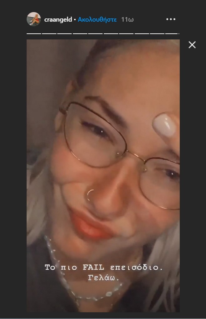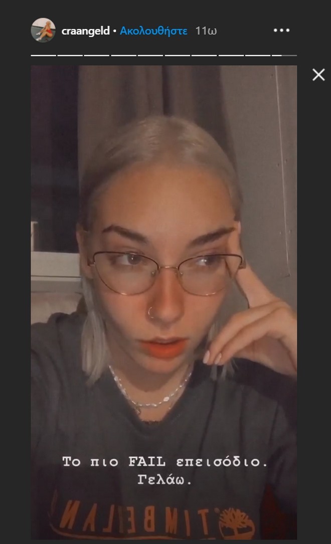 Σε story της στον προσωπικό της λογαριασμό στο Instagram, η νεαρή κοπέλα έγραψε “Το πιο FAIL επεισόδιο. Γελάω”, κάνοντας διάφορες γκριμάτσες.