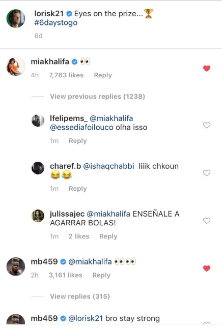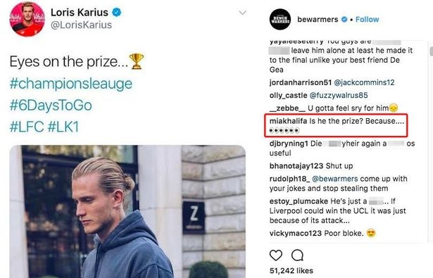 Πριν τον τελικό, η Khalifa έκανε ένα ακόμη σχόλιο υπέρ του Karius, στον Instagram λογαριασμό Bench Warmers: