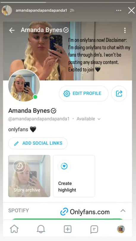 Η Bynes ανακοίνωσε την απόφασή της μέσω των Instagram Stories της, εξηγώντας πως ανυπομονεί να συνδεθεί με τους ακολούθους της και να μοιραστεί προσωπικές στιγμές και σκέψεις, αλλά χωρίς να προχωρήσει σε προκλητικό υλικό.