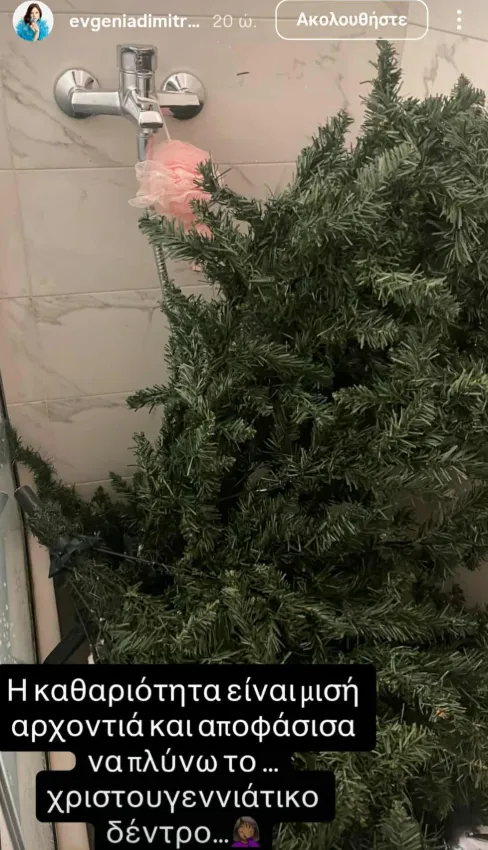 «Η καθαριότητα είναι μισή αρχοντιά και αποφάσισα να πλύνω το χριστουγεννιάτικο δέντρο», έγραψε.