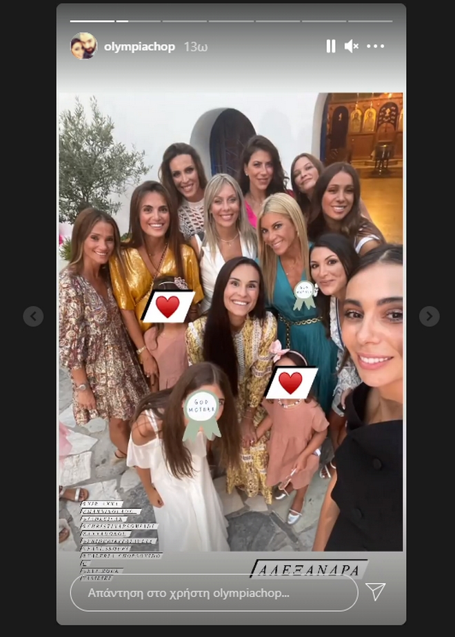Την είδηση της βάφτισης έκανε γνωστή η Ολυμπία Χοψονίδου, που μοιράστηκε φωτογραφίες στον προσωπικό της λογαριασμό στο Instagram.