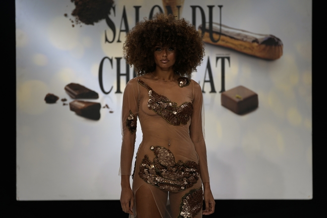 Η Alicia Aylies, η οποία κατέκτησε τον τίτλο Μις Γαλλία για το 2017, περπάτησε στην έκθεση σοκολάτας στο Παρίσι και τράβηξε όλα τα βλέμματα με το εντυπωσιακό φόρεμα που φόρεσε, το οποίο ήταν φτιαγμένο από σοκολάτα.