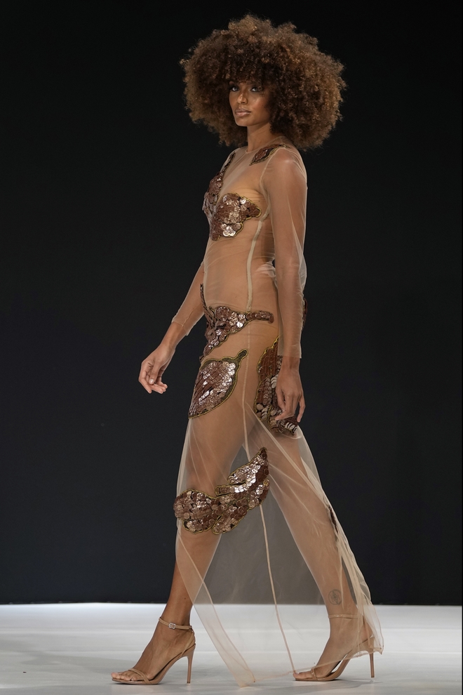 Το φέρεμα του διάσημου μοντέλου, ήταν διάφανο, ενώ είχε κομμάτια από σοκολάτα σε διάφορα σημεία του σώματός της. Όλα τα φορέματα της έκθεσης είναι βρώσιμα, ενώ φέτος συγκεντρώθηκαν περισσότερες από 500 σοκολάτες για τις εντυπωσιακές δημιουργίες.