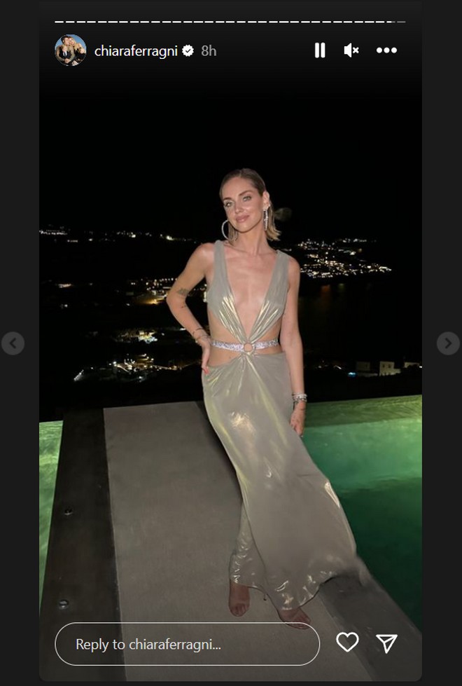 Σε ανάρτησή της, η Κιάρα Φεράνι μοιράστηκε μια σειρά από φωτογραφίες στις οποίες ποζάρει μαζί με την Φραντσέσκα και τις καλεσμένες της, φορώντας ένα σέξι χρυσό φόρεμα, με φόντο το δημοφιλές ηλιοβασίλεμα της Μυκόνου. “Πρώτη νύχτα στη Μύκονο για το bachelorette party της αδερφής μου”, έγραψε στη λεζάντα.