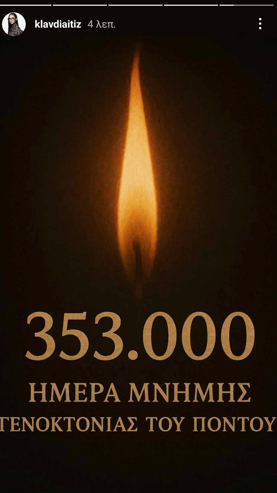 Κλαυδία: Η ανάρτησή της για την Ημέρα Μνήμης της Γενοκτονίας των Ποντίων