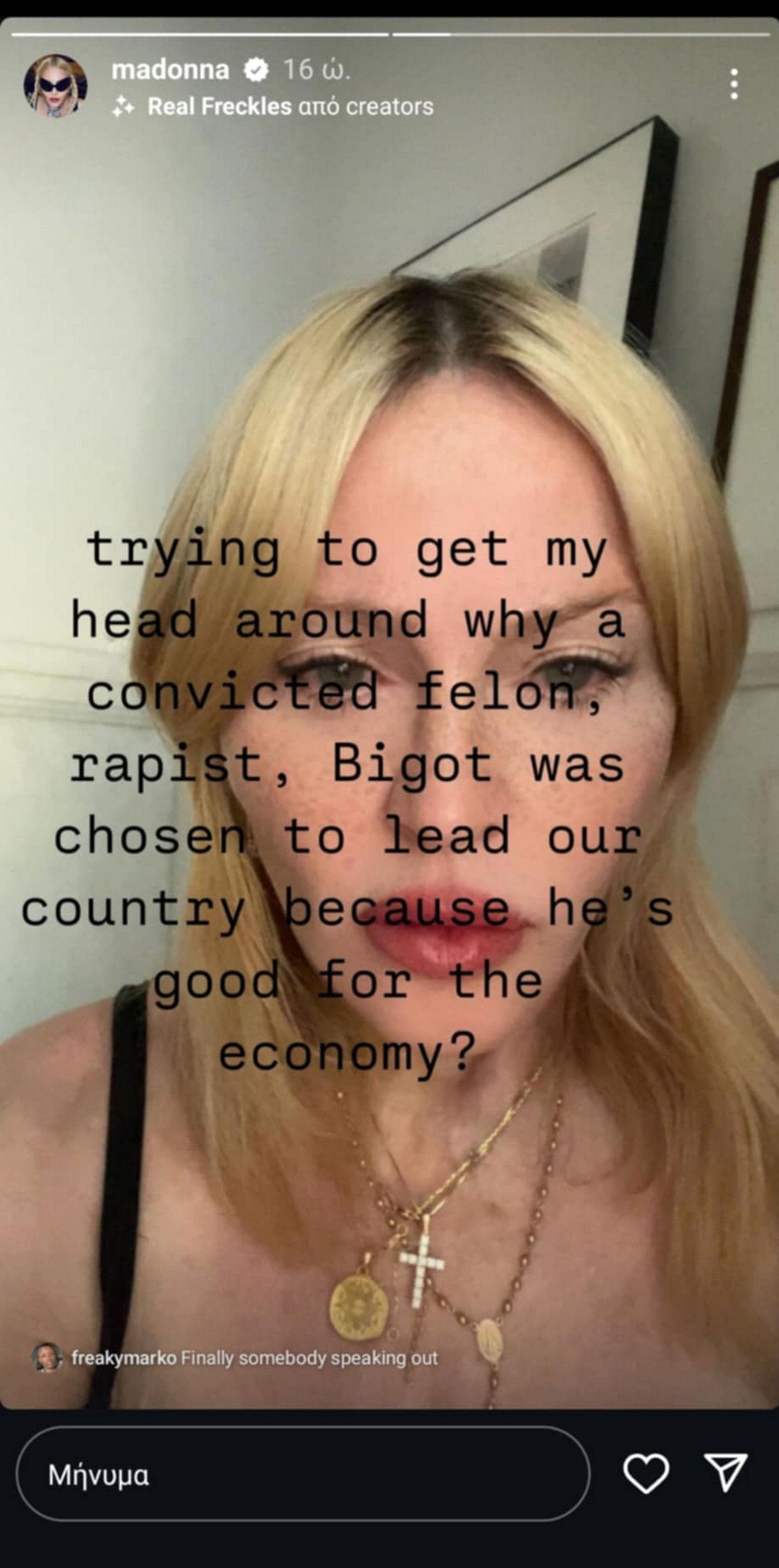 Η Madonna εξέφρασε την απογοήτευσή της για το εκλογικό αποτέλεσμα και τη νίκη Τραμπ με δύο φωτογραφίες στο Instagram. Οι αναρτήσεις της.