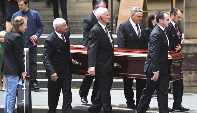 Εκατοντάδες θαυμαστές είχαν σχηματίσει ουρές στους δρόμους κοντά στην εκκλησία για να δουν από κοντά το φέρετρο με τη σορό του Γιανγκ να μεταφέρεται στην τελευταία του κατοικία, ενώ μια ορχήστρα με γκάιντες έπαιζε τον “ανεπίσημο εθνικό ύμνο” της Αυστραλίας, το Waltzing Matilda, όπως μετέδωσε το AAP.