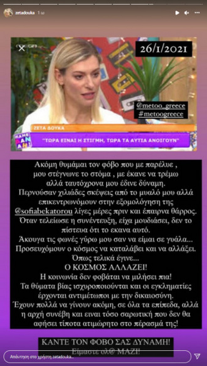 MeToo: Η Ζέτα Δούκα θυμάται ακόμα τον φόβο που την παρέλυε