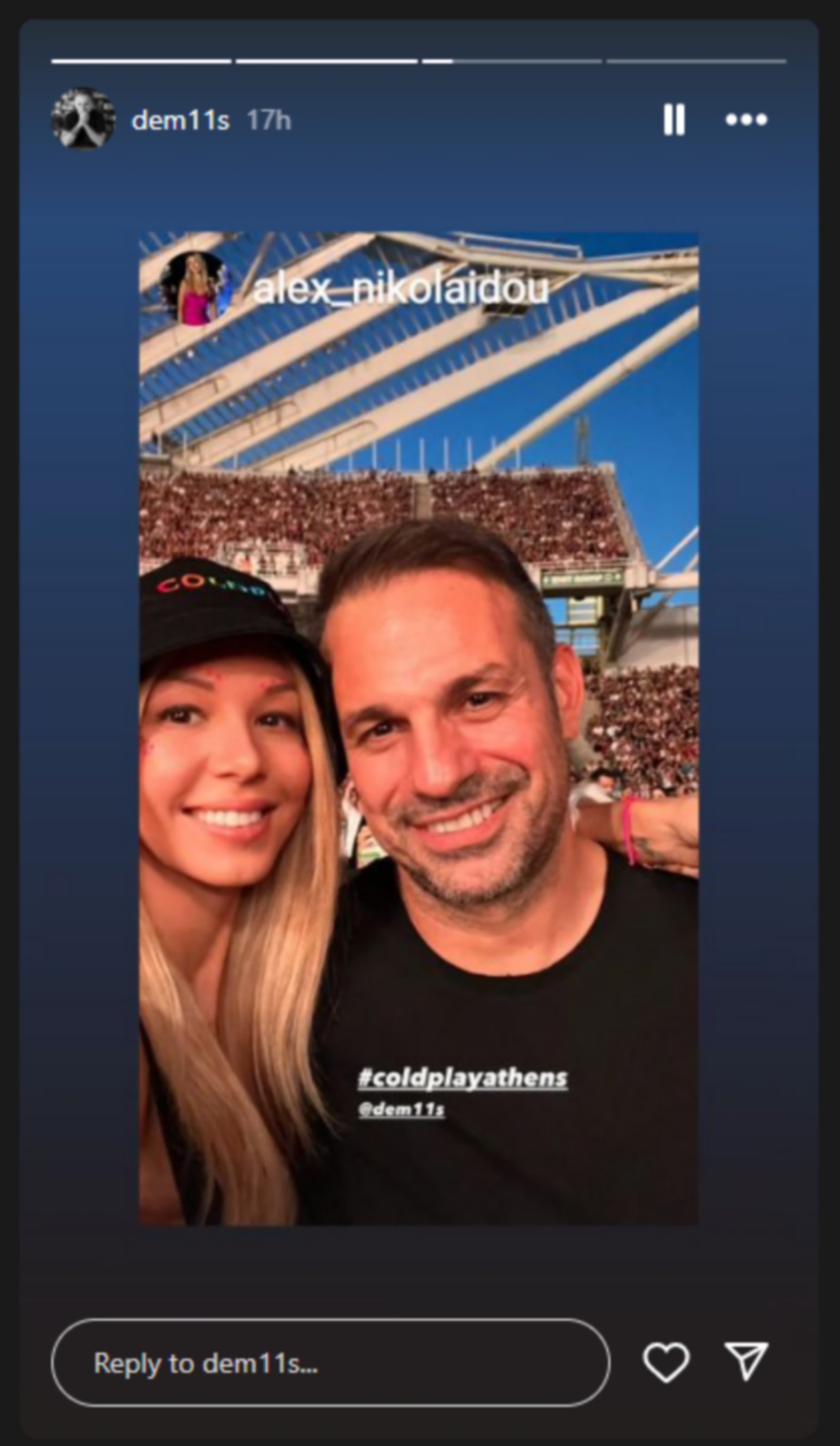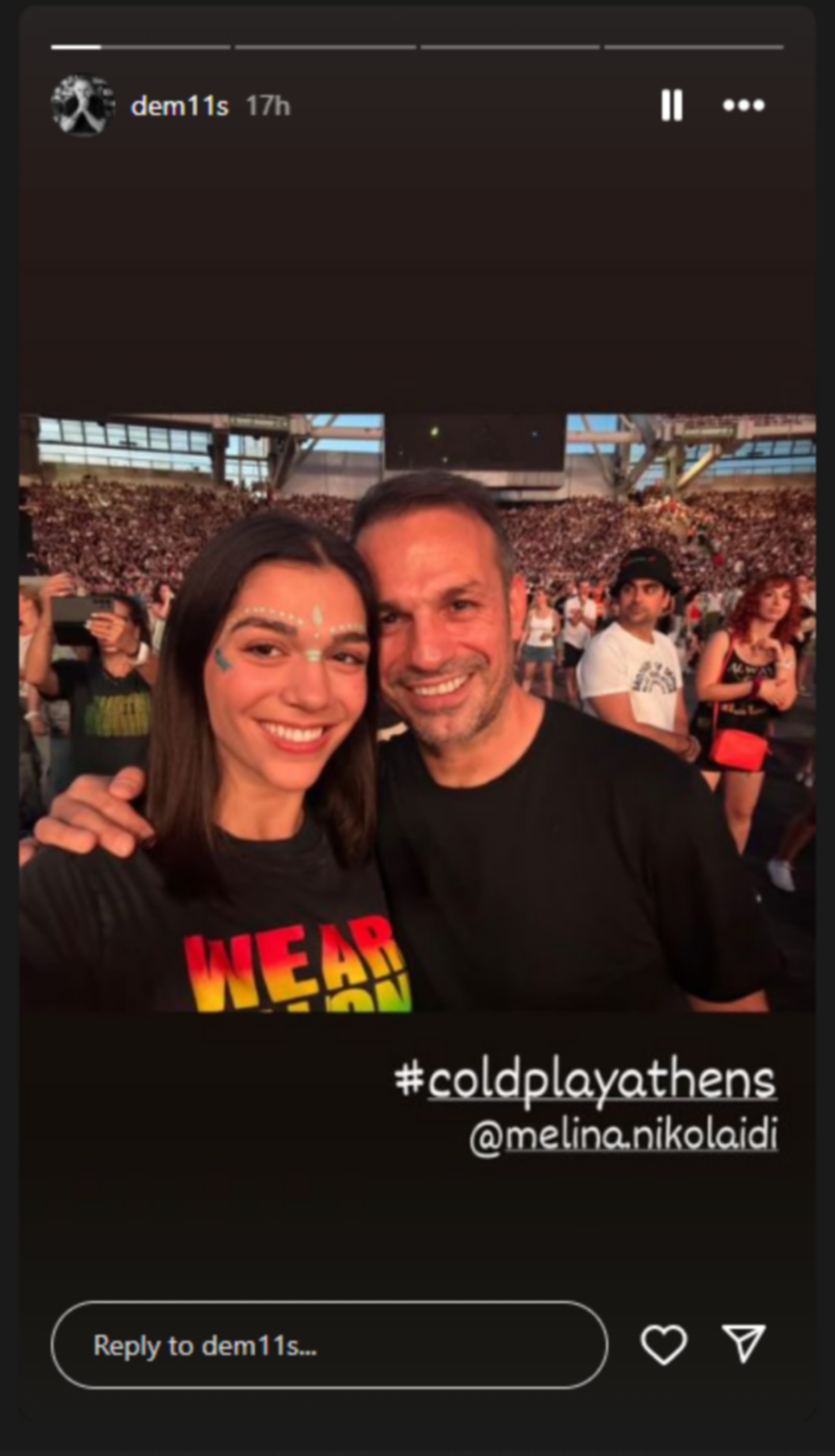 Το φανταστικό σόου των Coldplay στο ΟΑΚΑ απόλαυσε ο Ντέμης Νικολαΐδης παρέα με την Αλεξάνδρα Νικολαΐδου και την κόρη του Μελίνα. Οι φωτογραφίες στο Instagram.