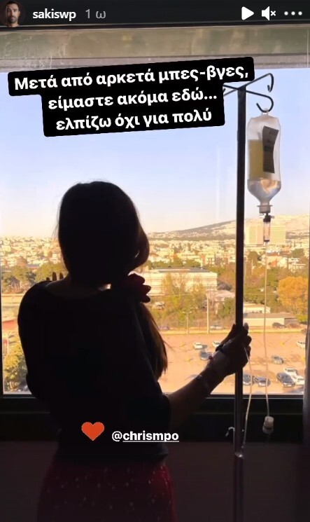 Ο παρουσιαστής φωτογράφισε τη σύζυγό του στο δωμάτιο του νοσοκομείου με τον ορό στο χέρι και έγραψε: “Μετά από αρκετά μπες – βγες, είμαστε ακόμα εδώ… ελπίζω όχι για πολύ”.