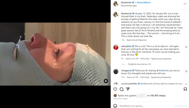 Σημειώνεται ότι διαγνώστηκε με καρκίνο του μαστού στο στάδιο 4 τον Φεβρουάριο του 2020. Η 52χρονη ηθοποιός συγκλονίζει με μία νέα ανάρτηση στα μέσα κοινωνικής δικτύωσης ανακοινώνοντας ότι η αξονική τομογραφία που πραγματοποιήθηκε στις 5 Ιανουαρίου έδειξε ότι είχε μετάσταση στον εγκέφαλο.
