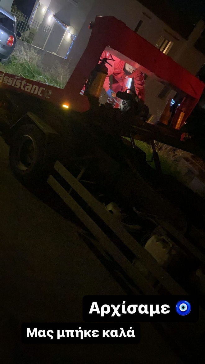 “Καλή χρονιά είπαμε; Αφού γλιτώσαμε τον γκρεμό καλά είμαστε“, έγραψε η Μαρία Αντωνά σε ανάρτηση που έκανε στα social media, ενώ ο γνωστός ποδοσφαιριστής και πρώην παίκτης του Survivor δημοσίευσε μία φωτογραφία στην οποία απεικονίζεται η στιγμή που γερανός από όχημα της οδικής ασφάλειας παίρνει το αυτοκίνητό του.
