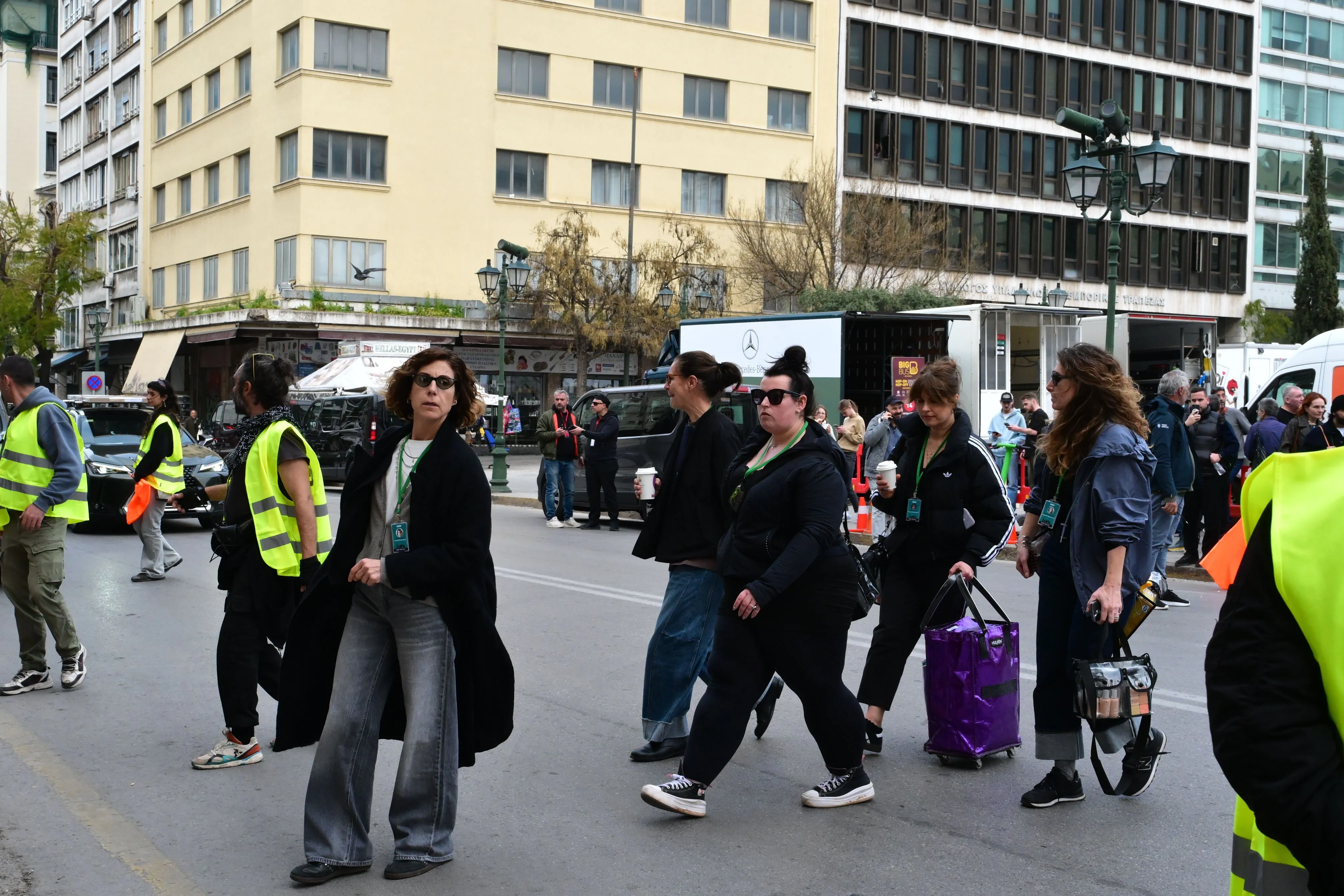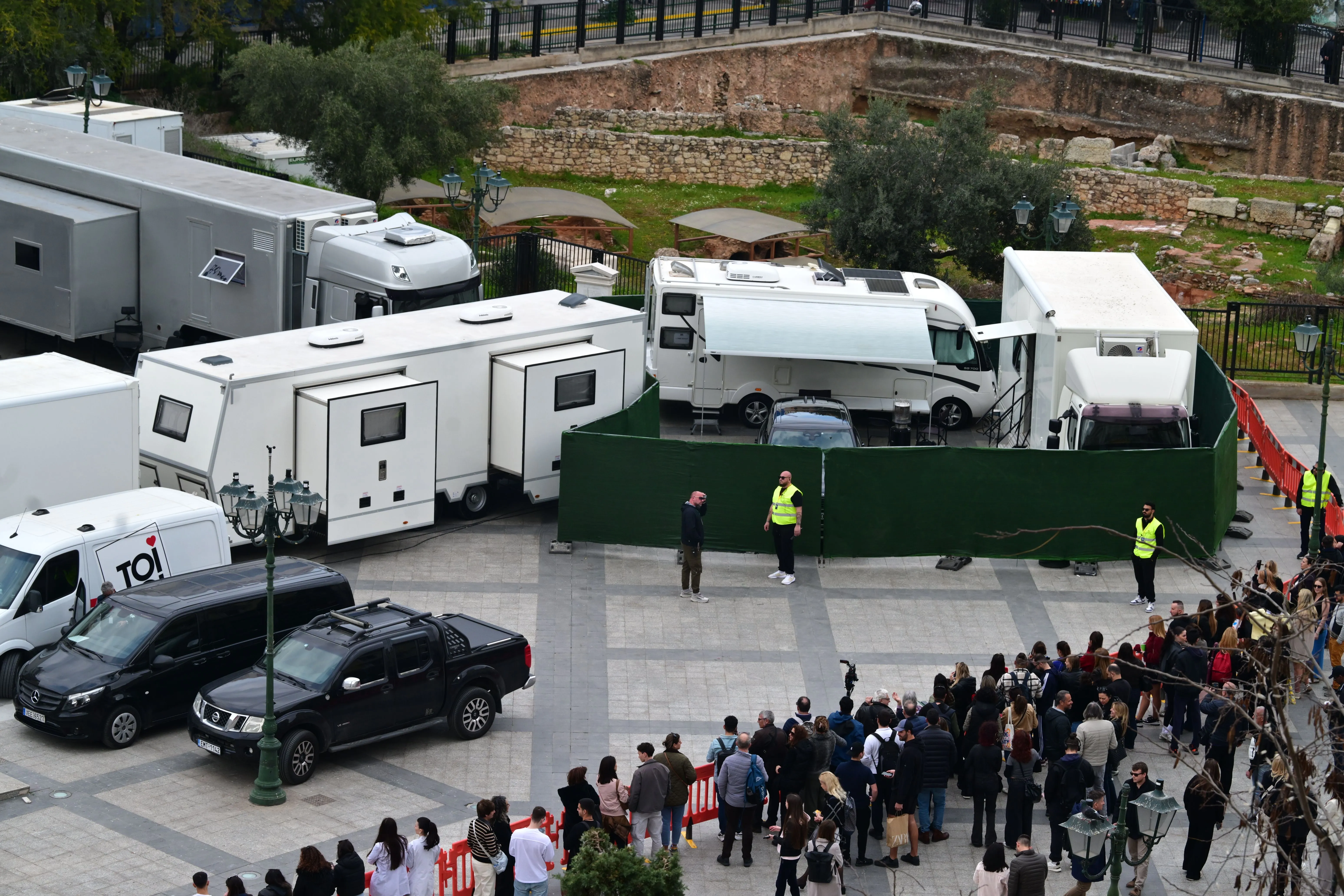 Η παρουσία του Μπραντ Πιτ στο κέντρο της πρωτεύουσας έχει κινητοποιήσει πλήθος κόσμου που προσπαθεί να καταγράψει τη στιγμή με τα κινητά του τηλέφωνα, ενώ στον χώρο επικρατούν αυστηρά μέτρα ασφαλείας.