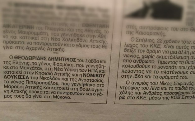 Στο Ριζοσπάστη η αγγελία γάμου της Δούκισσας