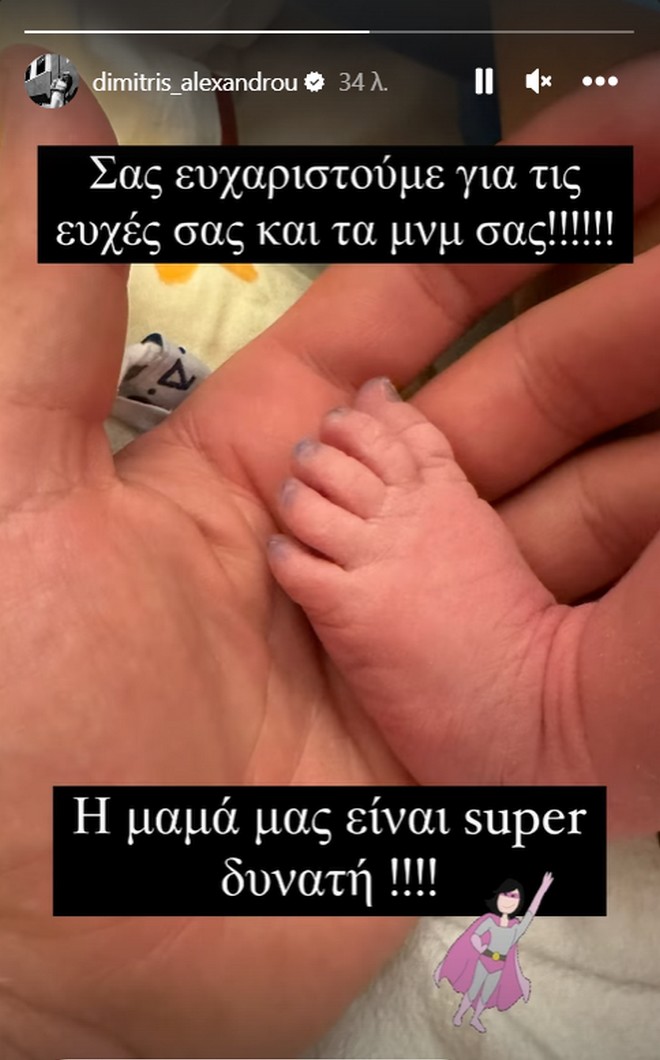 Λίγη ώρα αργότερα, ο Δημήτρης Αλεξάνδρου δημοσίευσε την πρώτη φωτογραφία του γιου του μέσω stories στο Instagram.