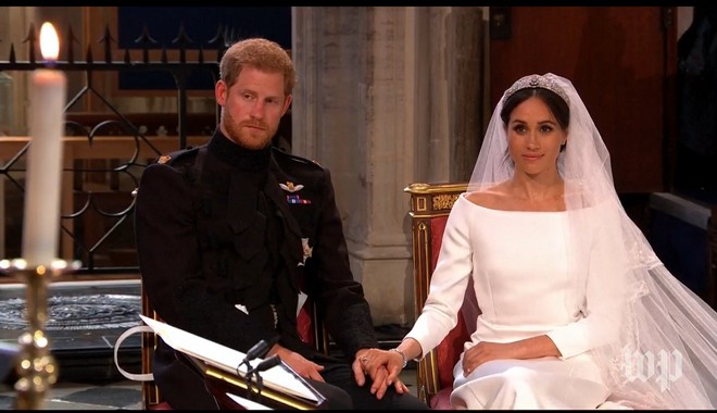 Νωρίτερα, ο Χάρι φόρεσε τη βέρα στο δάκτυλο της Μέγκαν και εκείνη έκανε το ίδιο στον Χάρι, αφού πρώτα το ζευγάρι απάντησε στον αρχιεπίσκοπο ότι δέχεται ένας τον άλλον ως σύζυγο, ακολουθώντας την παράδοση, σε μια θρησκευτική τελετή πολύ συγκινητική στο παρεκκλήσι του Αγίου Γεωργίου στο Ουίνδσορ, ενώπιον 600 καλεσμένων εκ των οποίων η βασίλισσα Ελισάβετ και πλήθοςδιασημοτήτων.