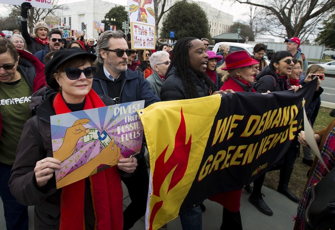 Σε διαδήλωση για την κλιματική αλλαγή έξω από το Καπιτώλιο στην Ουάσινγκτον βρέθηκαν οι τρεις αστέρες του Χόλιγουντ.