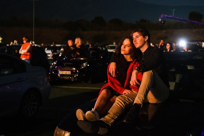 Δεκάδες αμάξια παρατάχθηκαν στον χώρο στάθμευσης κάτω από τη σκηνή από νωρίς, έχοντας το καθένα τη δική του θέση και τηρώντας τους απαραίτητους κανόνες ασφαλείας και αυτοπροστασίας.