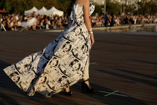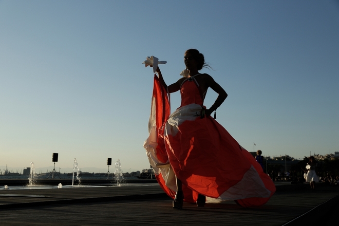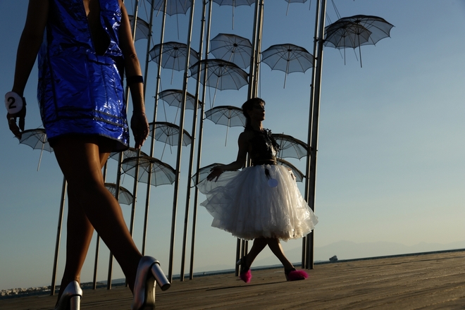 Ενώπιον των «πιστών» επισκεπτών της παραλίας της Θεσσαλονίκης και με φόντο το ηλιοβασίλεμα, μοντέλα παρουσίασαν συνολικά 55 δημιουργίες ενδυμάτων, σε μία διαφορετική πασαρέλα, που τείνει να γίνει πλέον θεσμός, στο πιο πολυσύχναστο μέρος της Θεσσαλονίκης, τις Ομπρέλες Ζογγολόπουλου, στη Νέα Παραλία.