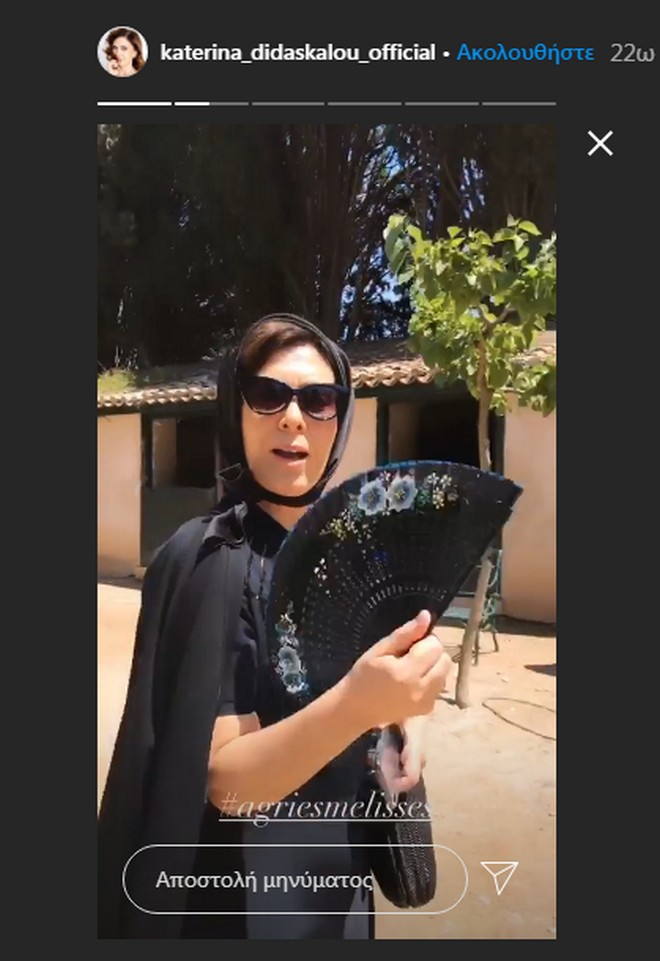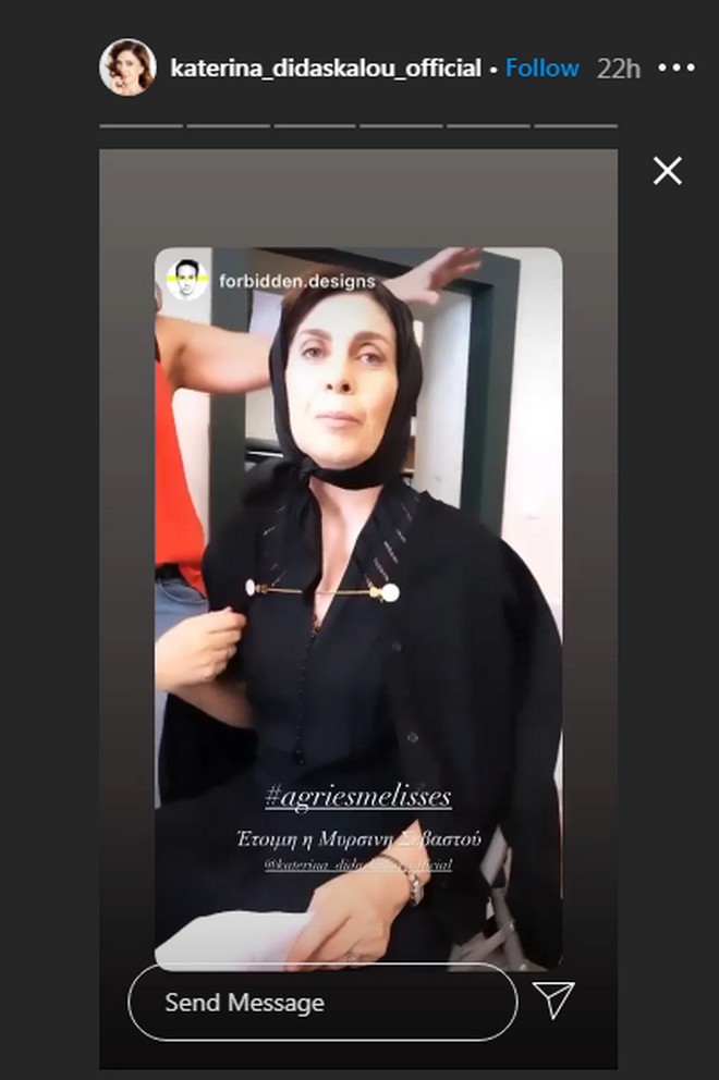 Αντίστοιχα insta stories από τις τελευταίες μέρες των γυρισμάτων ανήρτησε και η Κατερίνα Διδασκάλου, η τηλεοπτική Μυρσίνη, τονίζοντας, μάλιστα, την ζέστη και το γεγονός ότι φοράνε μακρυμάνικα ρούχα.