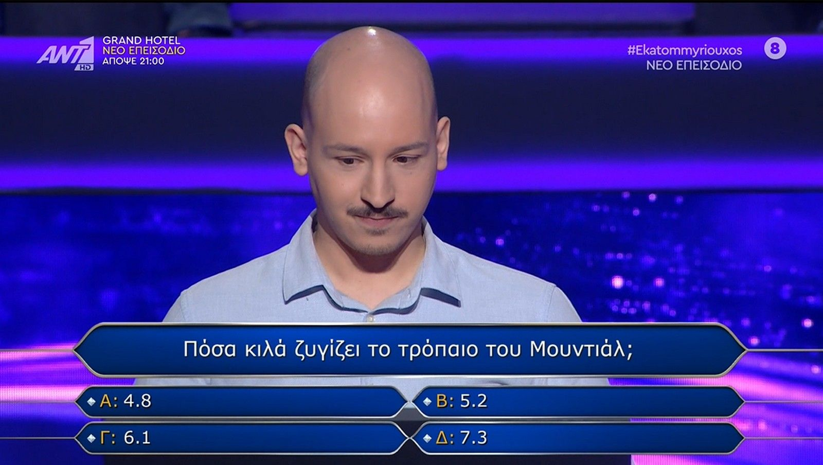 Μπορεί στη συνέχεια ο παίκτης – φαινόμενο να δυσκολεύτηκε όταν κλήθηκε να απαντήσει “Πόσα κιλά ζυγίζει το τρόπαιο του Μουντιάλ” όμως ο Φίλιππος ρίσκαρε και δικαιώθηκε.