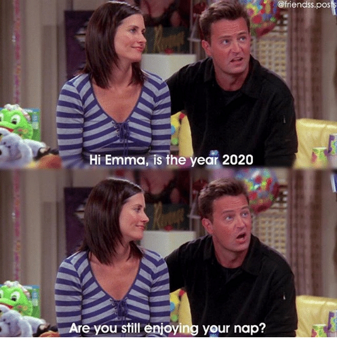 Η ατάκα που έγινε πολύ γρήγορα viral ήταν το μήνυμα του Chandler: “Hi, Emma. It’s the year 2020. Are you still enjoying your nap?” η οποία μας φέρνει με τη σειρά στην επίσης Viral απάντηση της “Emma”.