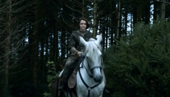 Επίσης, στο πρώτο επεισόδιο της τέταρτης σεζόν, την είδαμε πάνω σε ένα λευκό άλογο, όμοιο με του πατέρα της, Ned Stark, ο οποίος ήταν ένας εκ των εμπνευστών και εκπαιδευτών της.