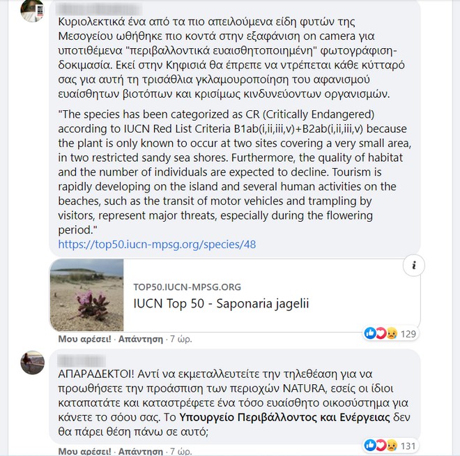 Τα παραπάνω εξόργισαν τους χρήστες των social media, οι οποίοι δικαίως αναρωτήθηκαν πώς γίνεται να καταπατείται με αυτό τον τρόπο μια περιοχή, η οποία θεωρείται προστατευόμενη.