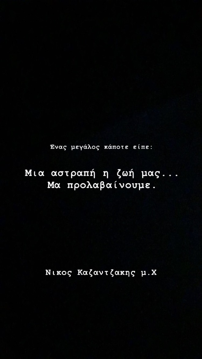 Επιλέγοντας έναν στίχο του Νίκου Καζαντάκη και γεμάτο νόημα, ο νικητής του House of Fame θέλησε να σχολιάσει και εκείνος με τη σειρά του τον χωρισμό του με την πρώην αγαπημένη του γράφοντας χαρακτηριστικά: “Μια αστραπή η ζωή μας… Μα προλαβαίνουμε”.