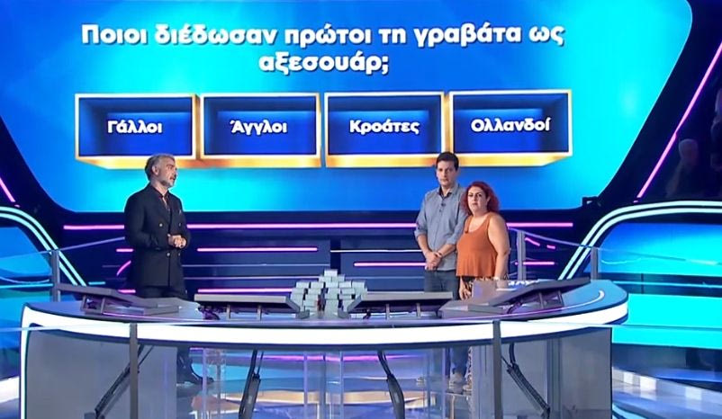 Το ζευγάρι παικτών “μπήκε” στον γύρο της τέταρτης ερώτησης του Money Drop με 140.000 ευρώ και διάλεξε την κατηγορία “προέλευση”.